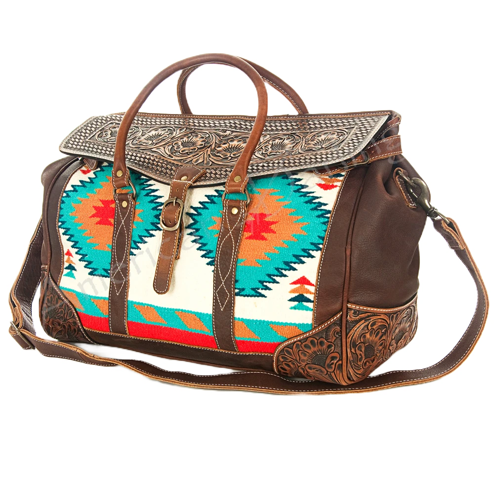 American Darling Aztec & Brown Leather Duffle Bag ADBG588