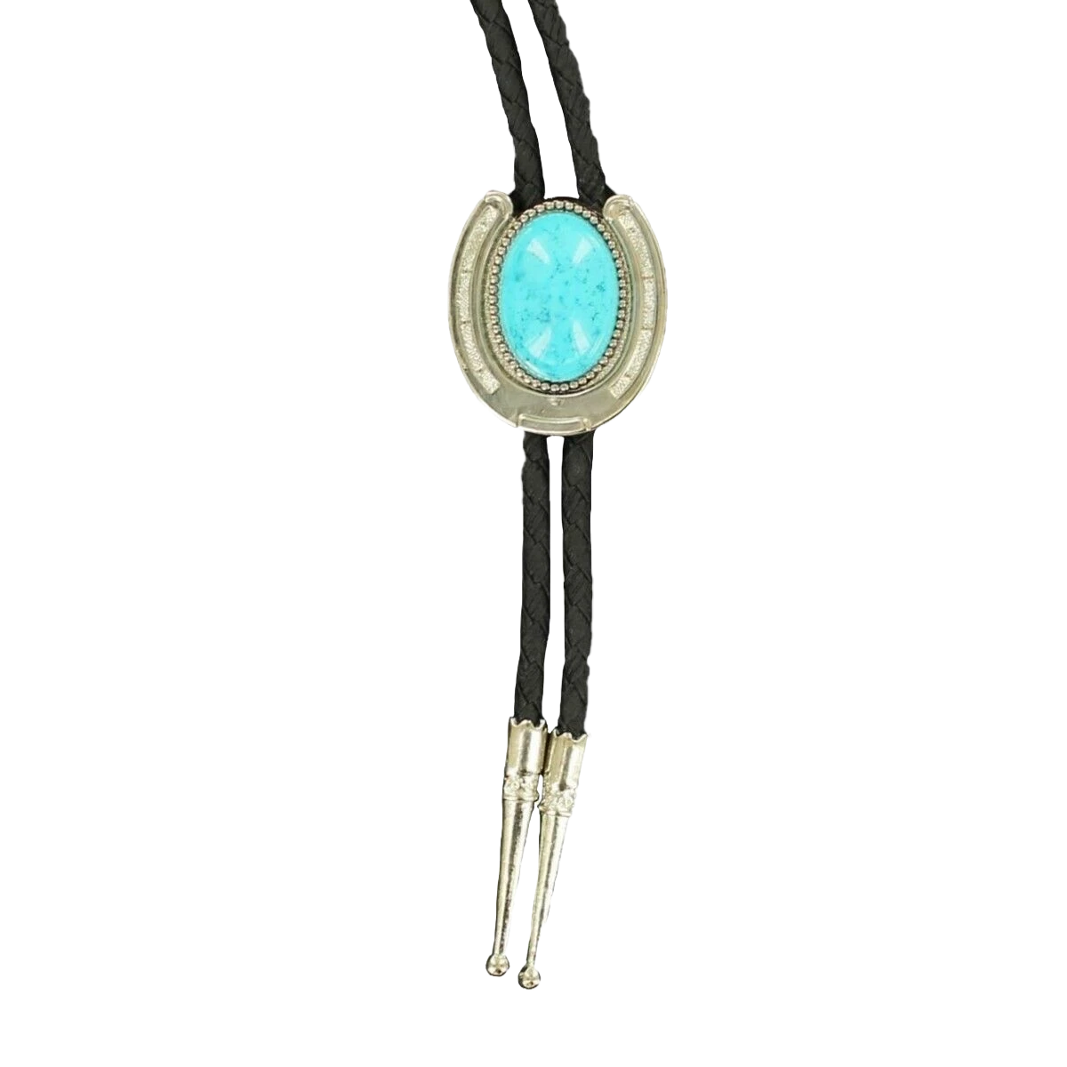 Double S Horseshoe & Turquoise Stone Concho Slide Bolo Tie 22108