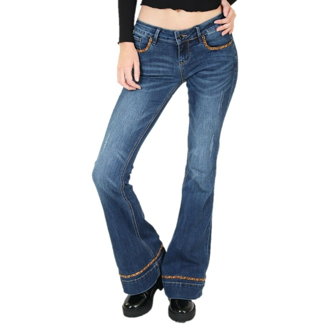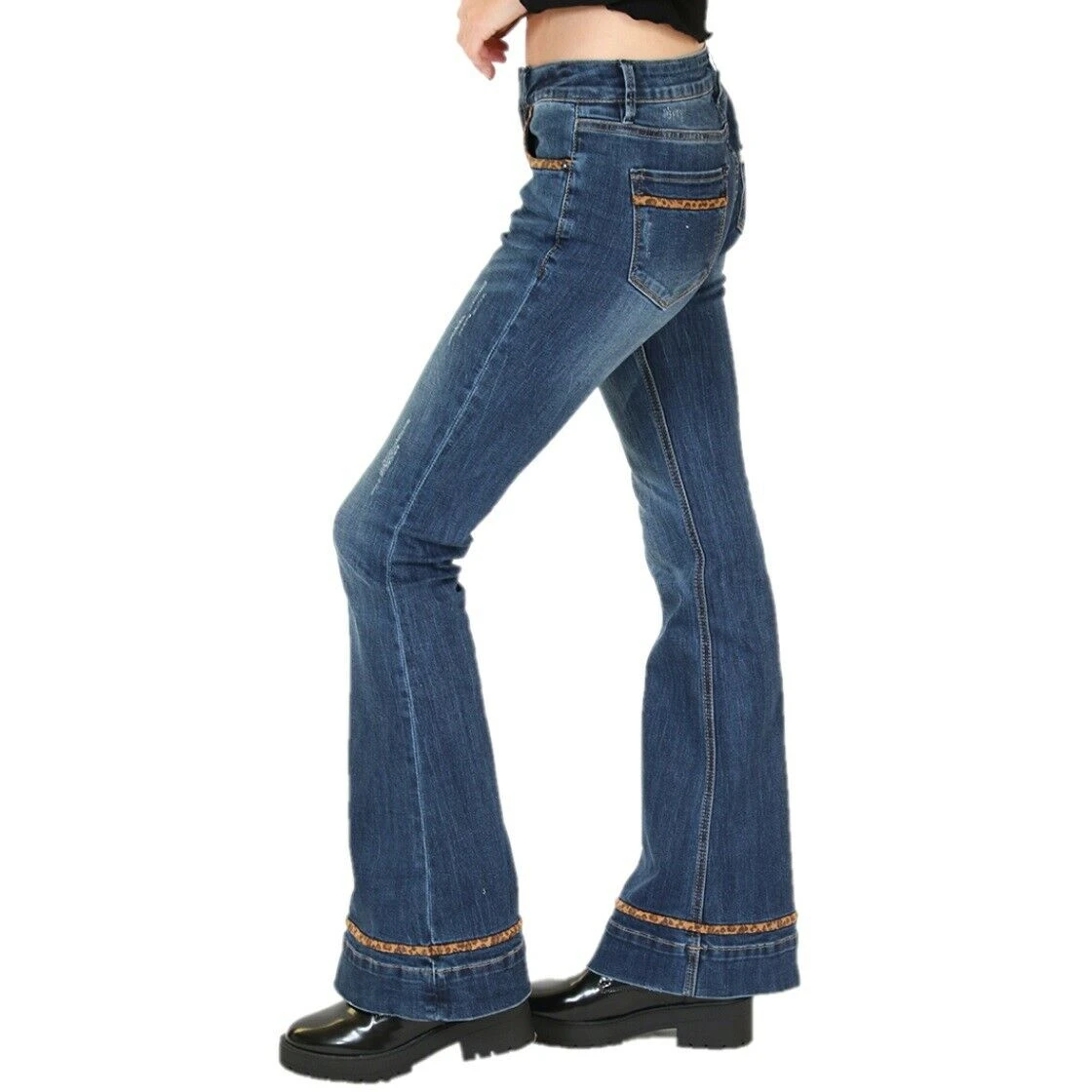 Grace In L.A. Ladies Leopard Print Detailed Flare Jeans EL2756