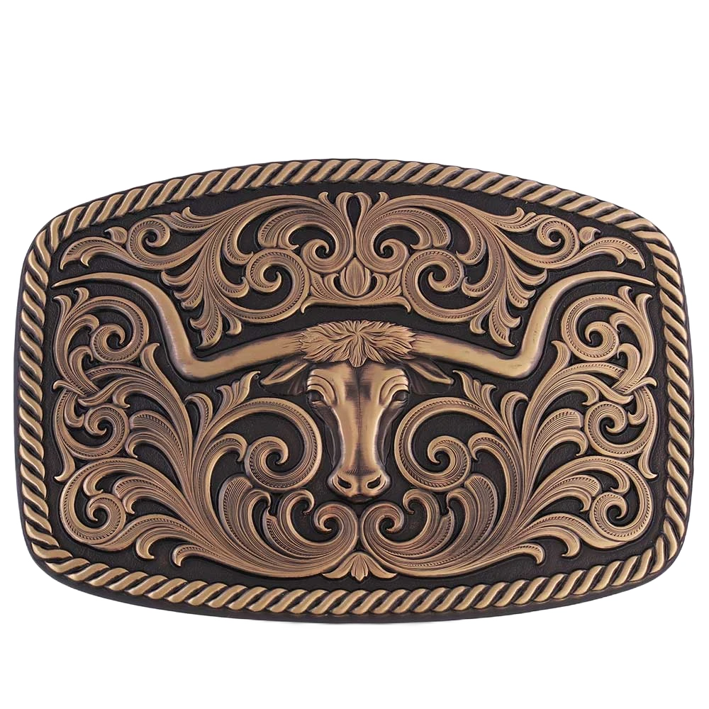 Montana Silversmiths Longhorn & Scrolls Bronze Buckle 33010BLB
