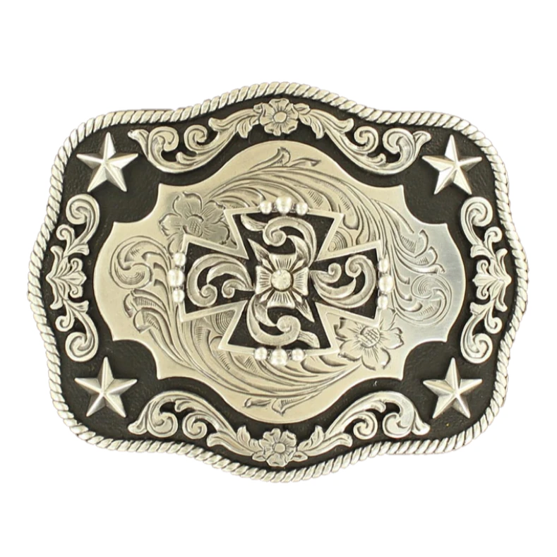 Nocona Unisex Rectangle Silver Cross Stars Belt Buckle 37704