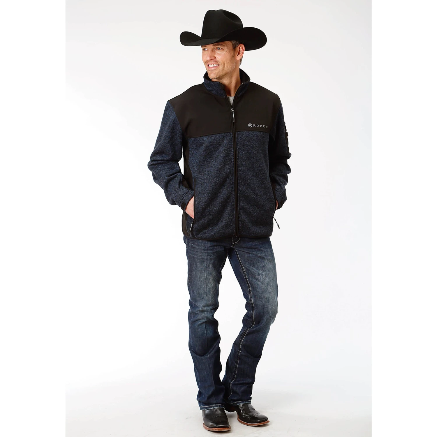 Roper Men’s Blue & Black Knit Sweater Fleece Jacket 03-097-0794-7110BU