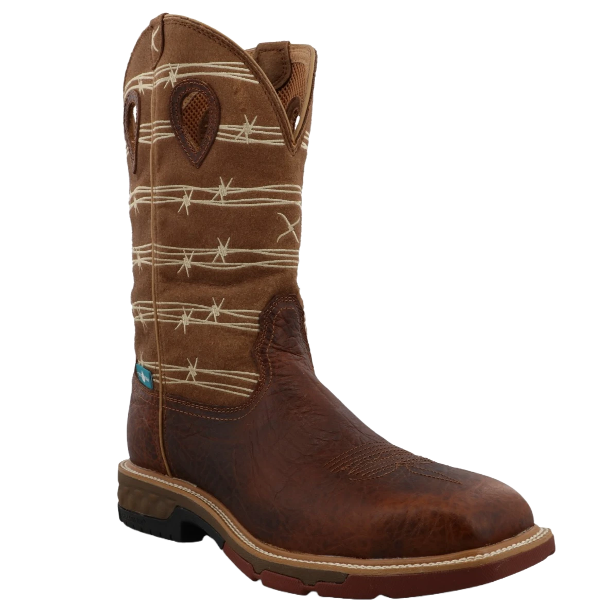 Twisted X Men’s Barbwire Rustic Brown & Lion Tan Square Toe Boots MXBAW05